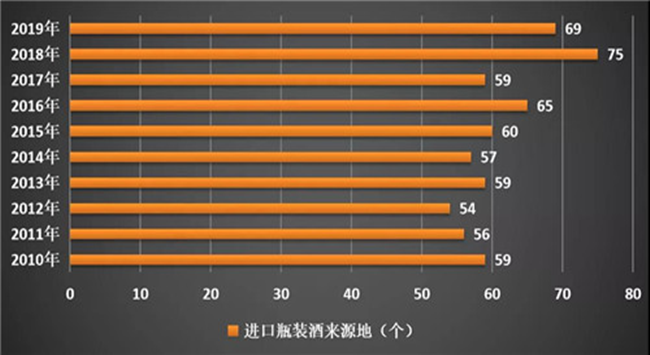 二是進(jìn)口來源地減少。2020年一季度,瓶裝酒進(jìn)口來源地為52個。