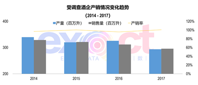 自2014年以來,國產(chǎn)葡萄酒企產(chǎn)銷率維持在95%以上,基本能實(shí)現(xiàn)產(chǎn)銷平衡。2017年葡萄酒的產(chǎn)量和銷量雙雙降至近幾年來的最低值,但產(chǎn)銷率為100.73%,為近幾年最佳平衡點(diǎn)。