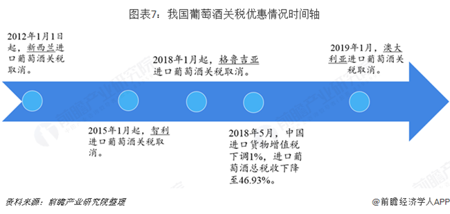 我國(guó)分別于2012年和2015年先后對(duì)新西蘭和智利進(jìn)口葡萄酒實(shí)施零關(guān)稅。2018年起格魯吉亞進(jìn)口葡萄酒也加入零關(guān)稅隊(duì)伍。根據(jù)中澳自貿(mào)協(xié)定,2019年1月起,我國(guó)進(jìn)口澳大利亞葡萄酒的關(guān)稅降至零。