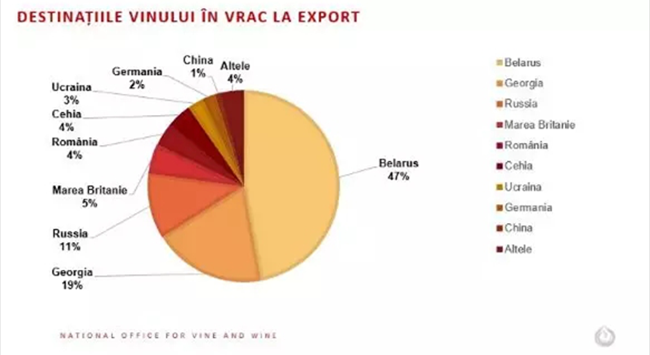 白俄羅斯、格魯吉亞以及俄羅斯進(jìn)口的葡萄酒總量占摩爾多瓦出產(chǎn)散裝葡萄酒總量的77%。其中,白俄羅斯占比達(dá)47%。