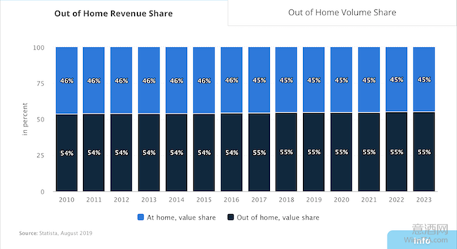 據(jù)統(tǒng)計,目前全球在家庭中日常消費的葡萄酒數(shù)量占葡萄酒總消費量的71%,而消費金額僅占全球葡萄酒總銷售額的45%。這也說明,餐廳、酒吧、體驗式門店(Enoteca)等渠道中對于葡萄酒銷售而言意味著更大的利潤空間。