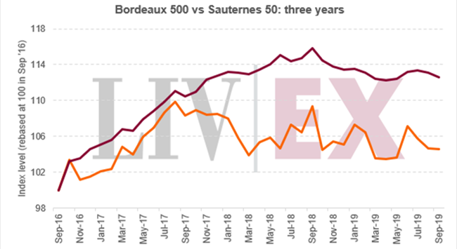 在過去三年,一向走勢緩慢的蘇玳50指數(shù)上升4.6%。同期,更廣泛的波爾多500指數(shù)則已上升12.6%。
