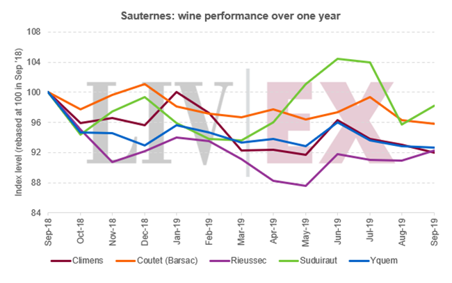 本年至今,波爾多的表現(xiàn)好壞參半。在其分項(xiàng)指數(shù)中,右岸50跌幅最大(-3.1%),緊隨其后的是蘇玳 50(-2.5%)。
