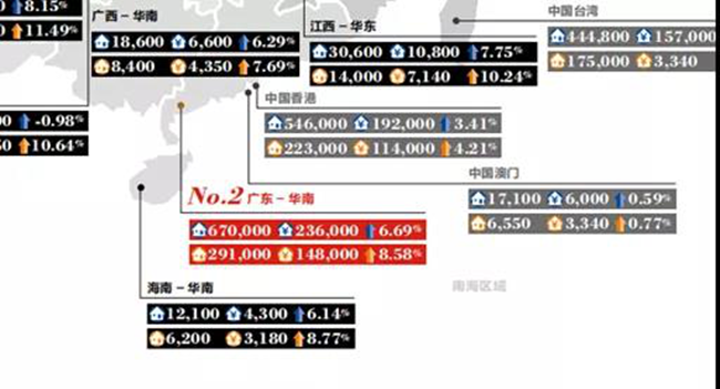 CBNData顯示,廣東是2018和2019年度酒水消費(fèi)金額占比最高的省份,而廣東省坐擁深圳和廣州兩個一線城市,表現(xiàn)十分搶眼。 回頭看廣東省600萬及1000萬資產(chǎn)家庭數(shù)量,結(jié)論顯而易見了。
