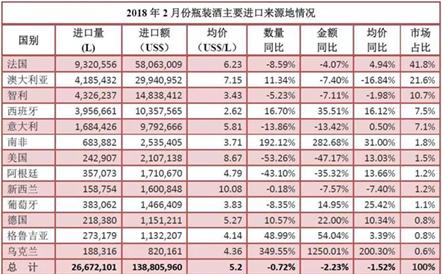 據(jù)酒類進(jìn)出口商分會(huì)發(fā)布的進(jìn)口酒數(shù)據(jù)顯示,2018年1-2月,進(jìn)口酒類市場(chǎng)繼續(xù)保持量?jī)r(jià)齊升的態(tài)勢(shì),葡萄酒品類消費(fèi)升級(jí)趨勢(shì)明顯,法國(guó)、澳大利亞、智利仍繼續(xù)領(lǐng)跑。 酒類進(jìn)出口商分會(huì)秘書(shū)長(zhǎng)王旭偉曾在接受記者采訪時(shí)表示,因2017年與2018年春節(jié)時(shí)間不一致,應(yīng)該...