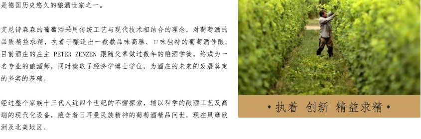 原產(chǎn)地:德國-萊茵黑森 級別:Qmp-Eiswein(冰酒) 年份:2016 類型:甜型 葡萄品種:100%霞多麗Chardonnay 酒精度:8.5%vol 凈含量:375ml 顏色:金黃色的液體,清澈亮麗; 酒香:有著成熟的熱帶水果香氣,如雪梨、桃子、蜂蜜; 味蕾:入口圓潤甜美,甜而不膩,清新爽口,余香持久。 食物搭配:搭配奶酪蛋糕,布丁,鵝肝,藍紋奶酪等。 最佳適飲溫度:4-6℃ 建議醒酒時間:即開即飲